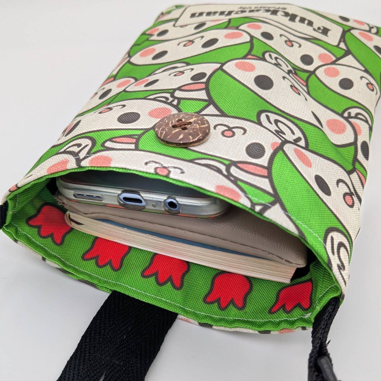 スマホはもちろんポーチや文庫本も一緒に収まるサイズです。