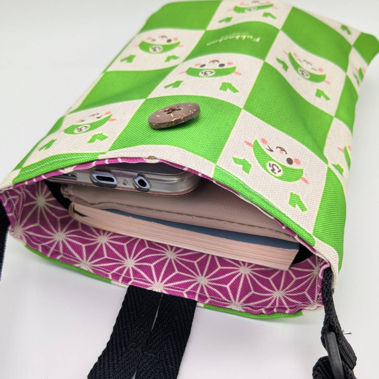 スマホはもちろんポーチや文庫本も一緒に収まるサイズです。