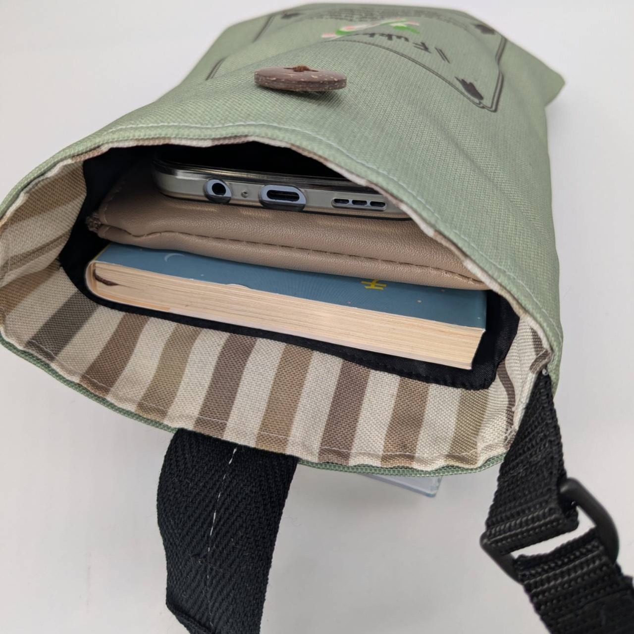 スマホはもちろんポーチや文庫本も一緒に収まるサイズです。