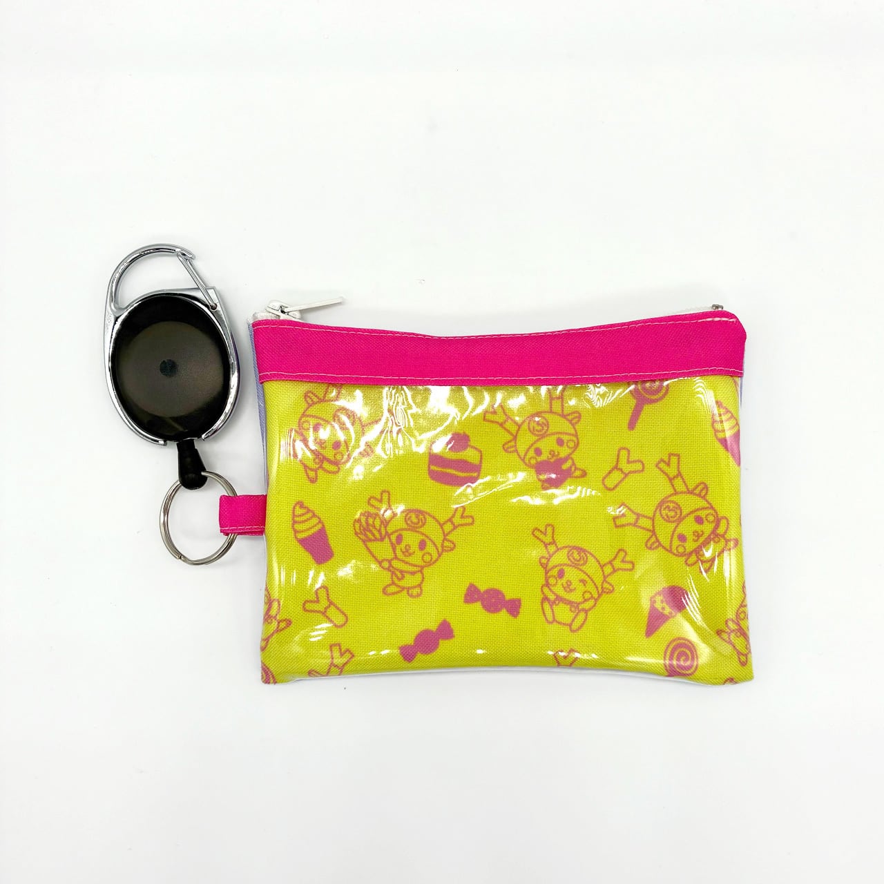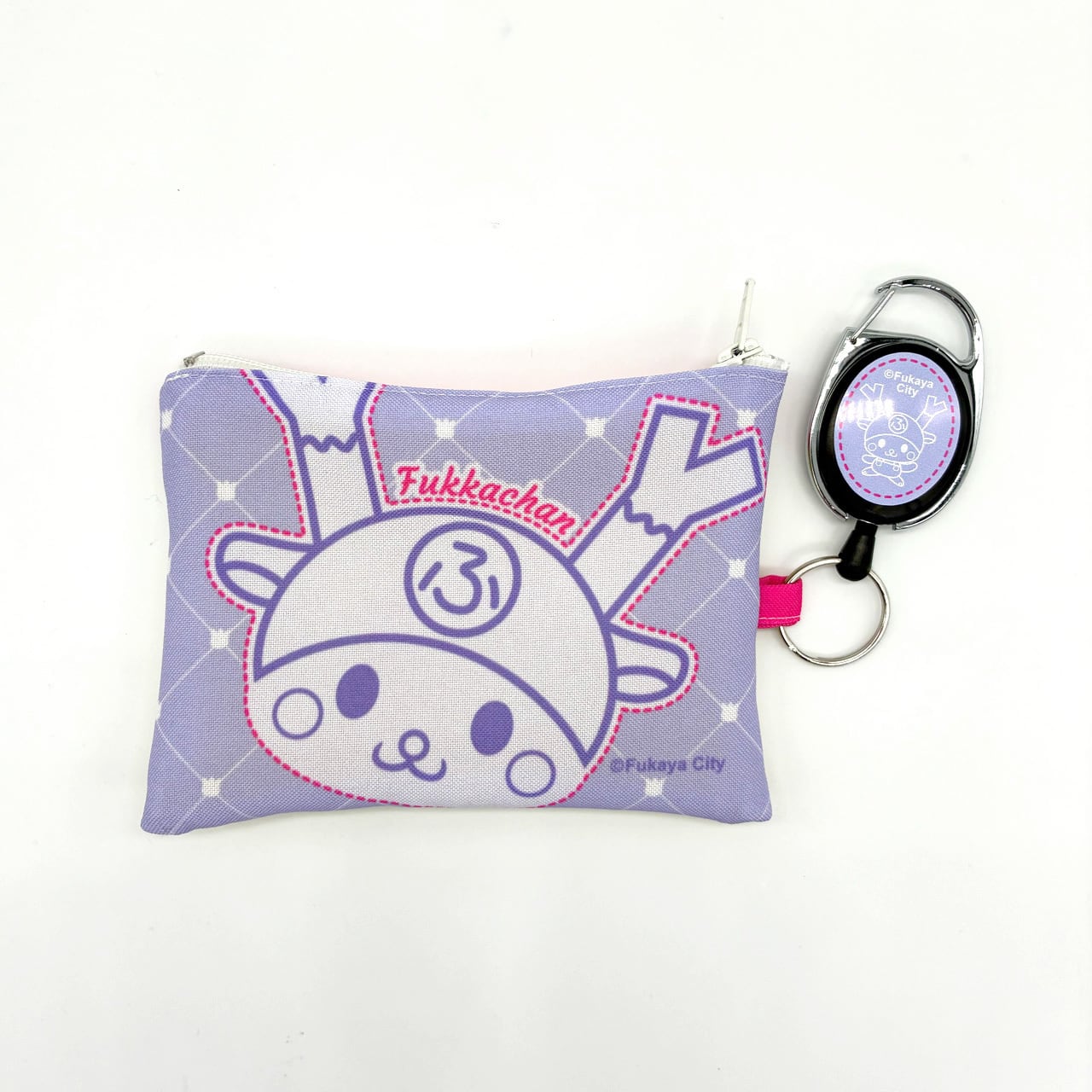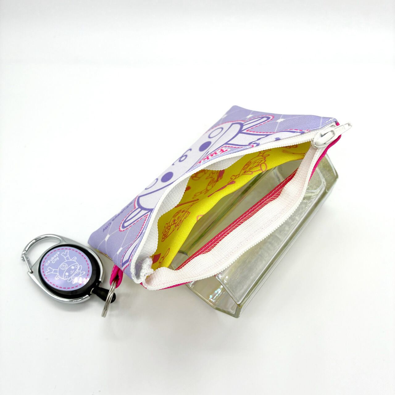 ふっかちゃんリールキーホルダー付パスケース(ミニポーチ)/ラベンダー&イエロー