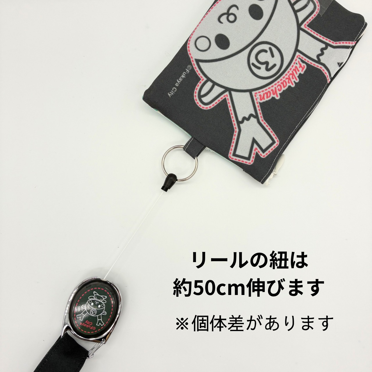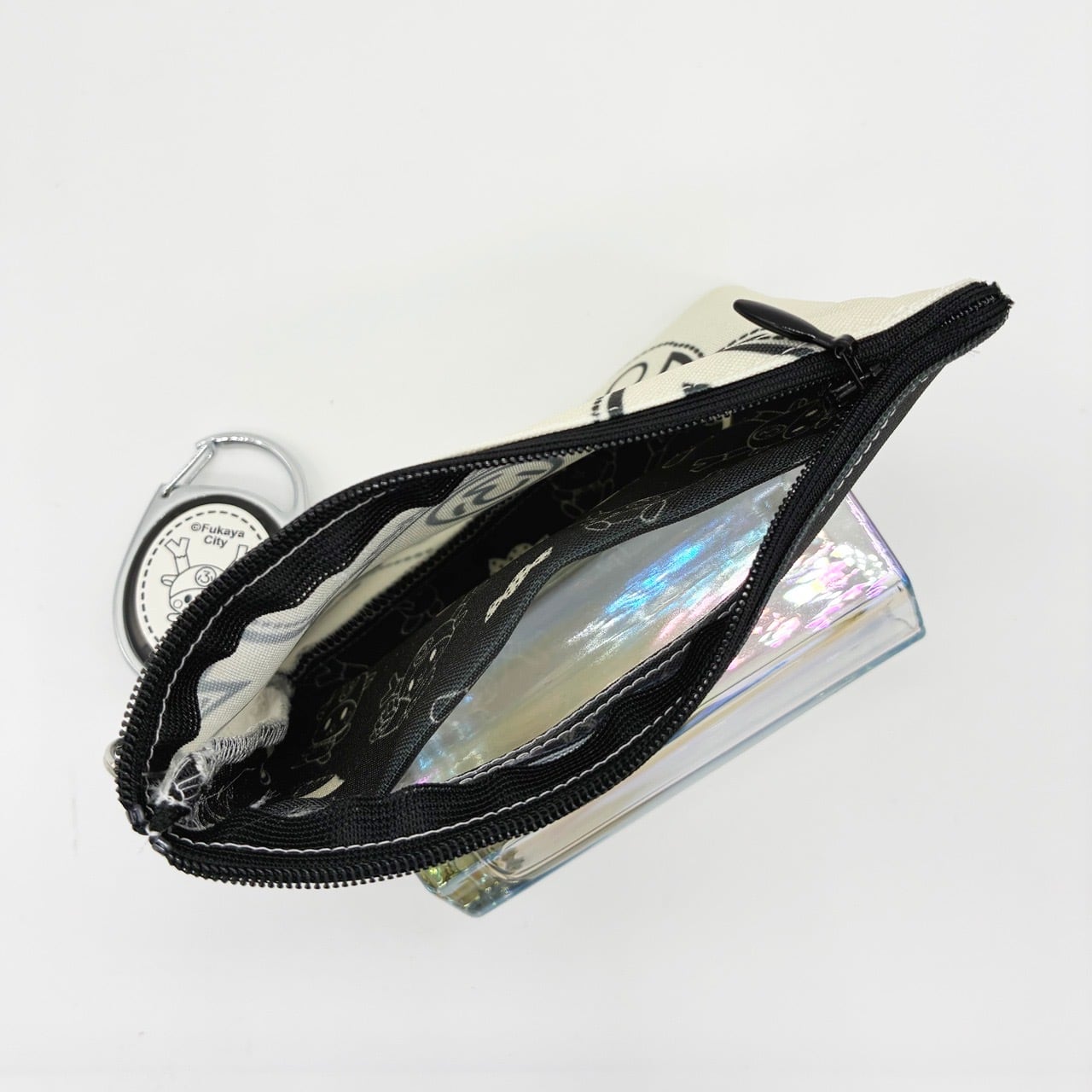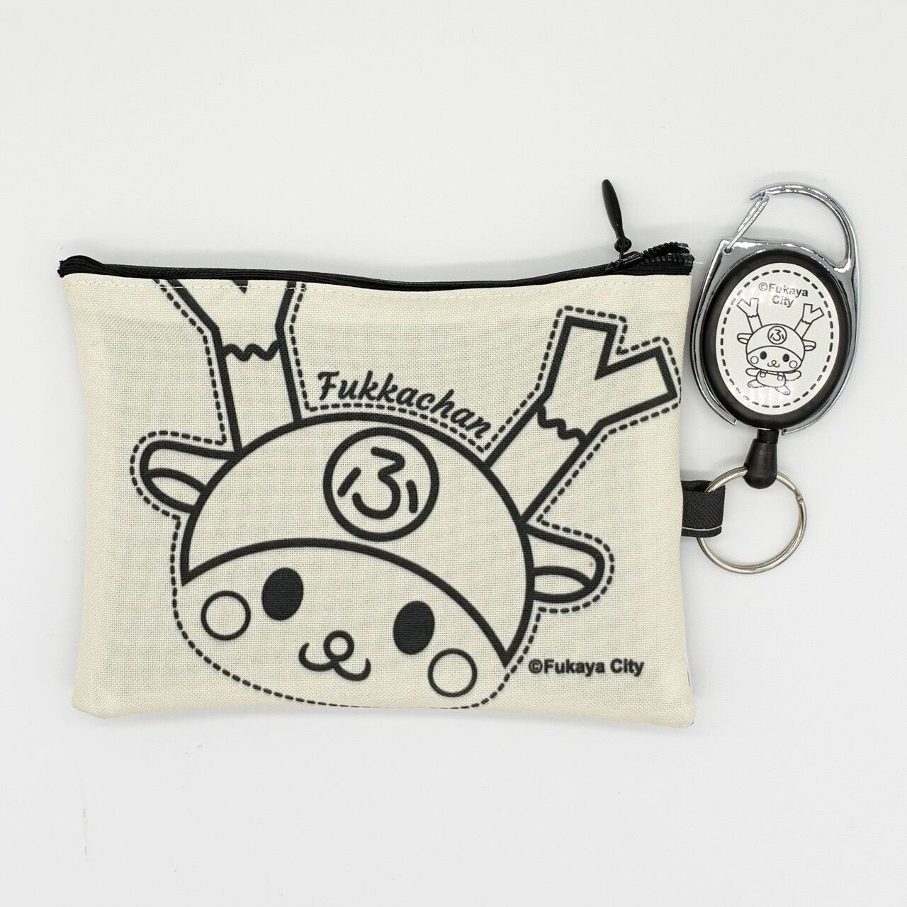 ふっかちゃんリールキーホルダー付パスケース(ミニポーチ)/オフホワイト&ブラック