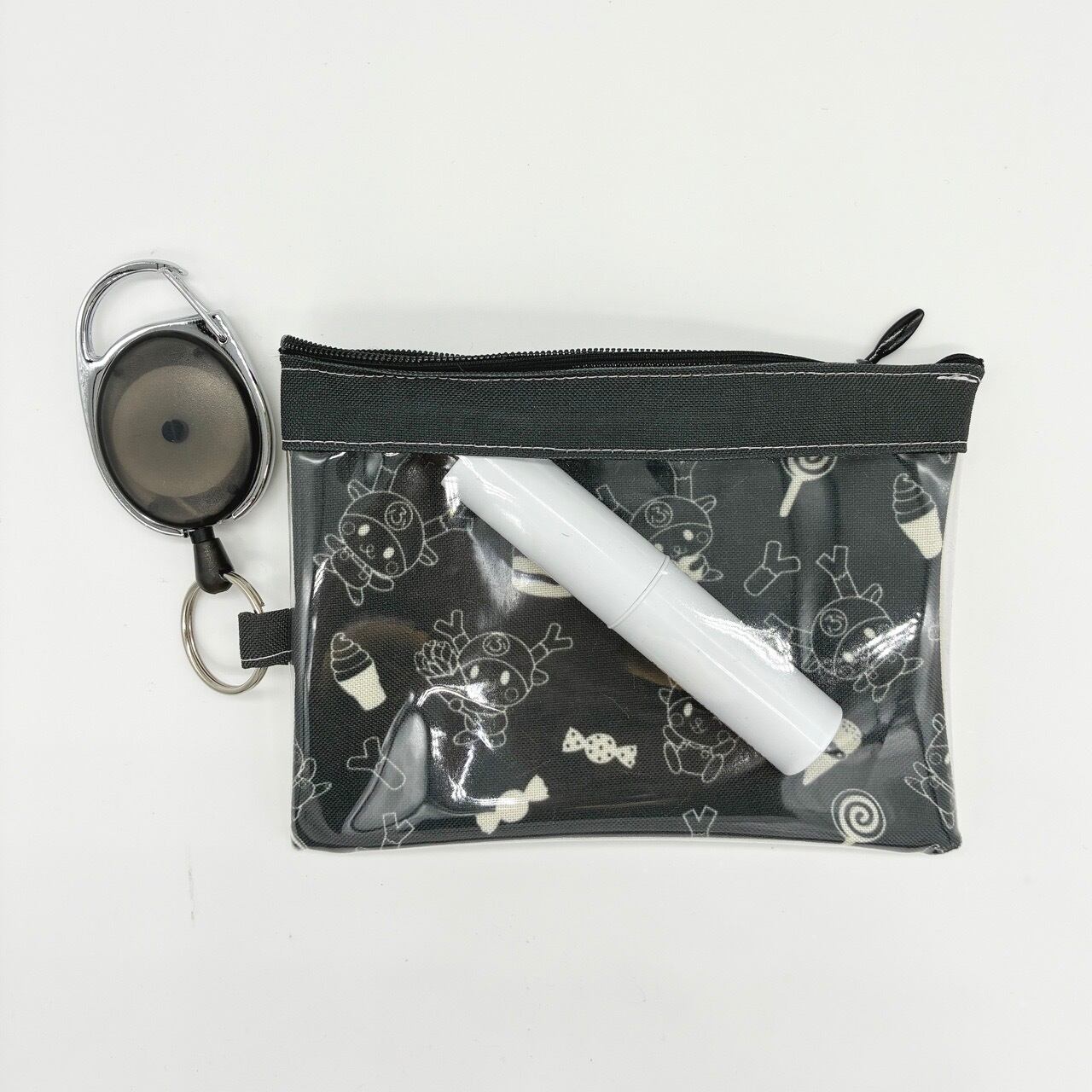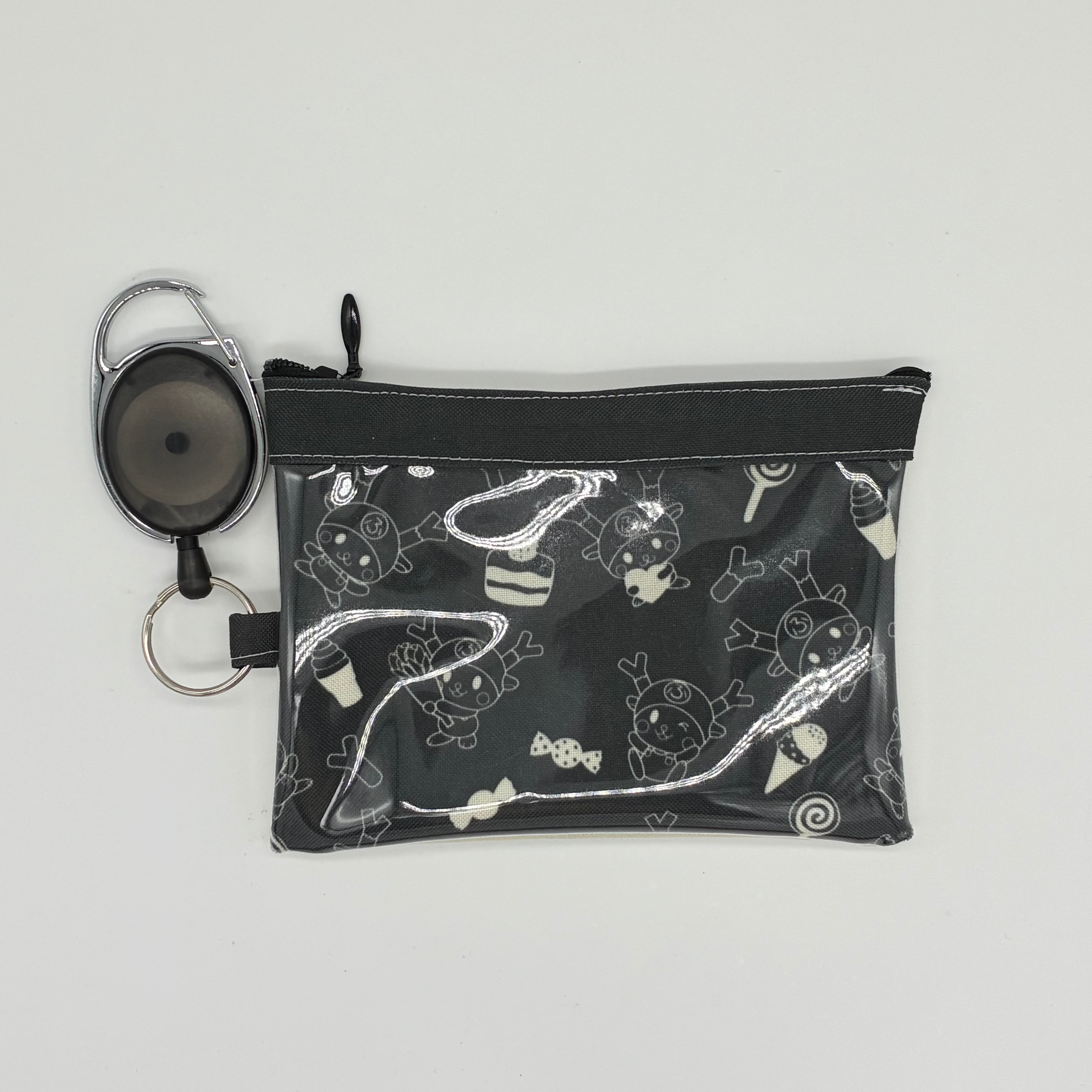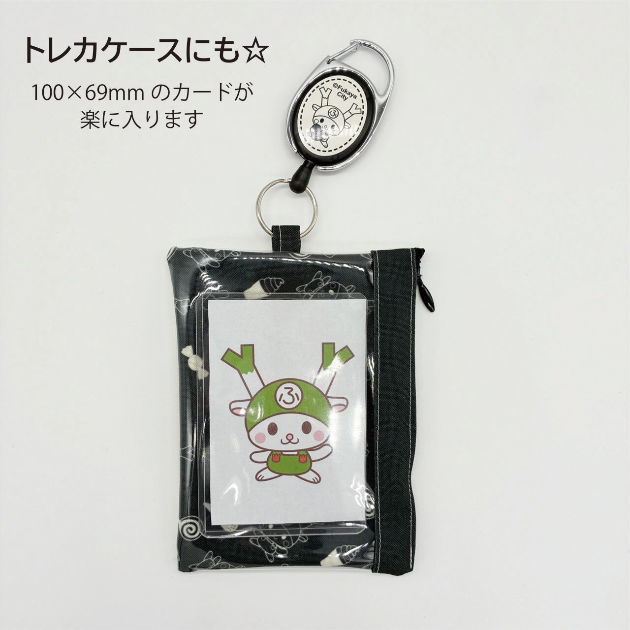 ふっかちゃんリールキーホルダー付パスケース(ミニポーチ)/オフホワイト&ブラック