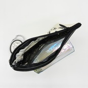 ファスナーを開けると中には生地の柔らかい仕切りがあり、小物やカードを分けて収納できます。