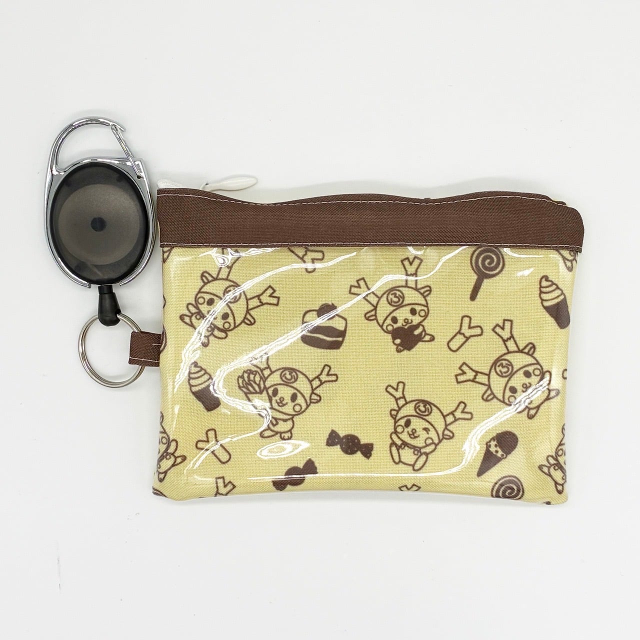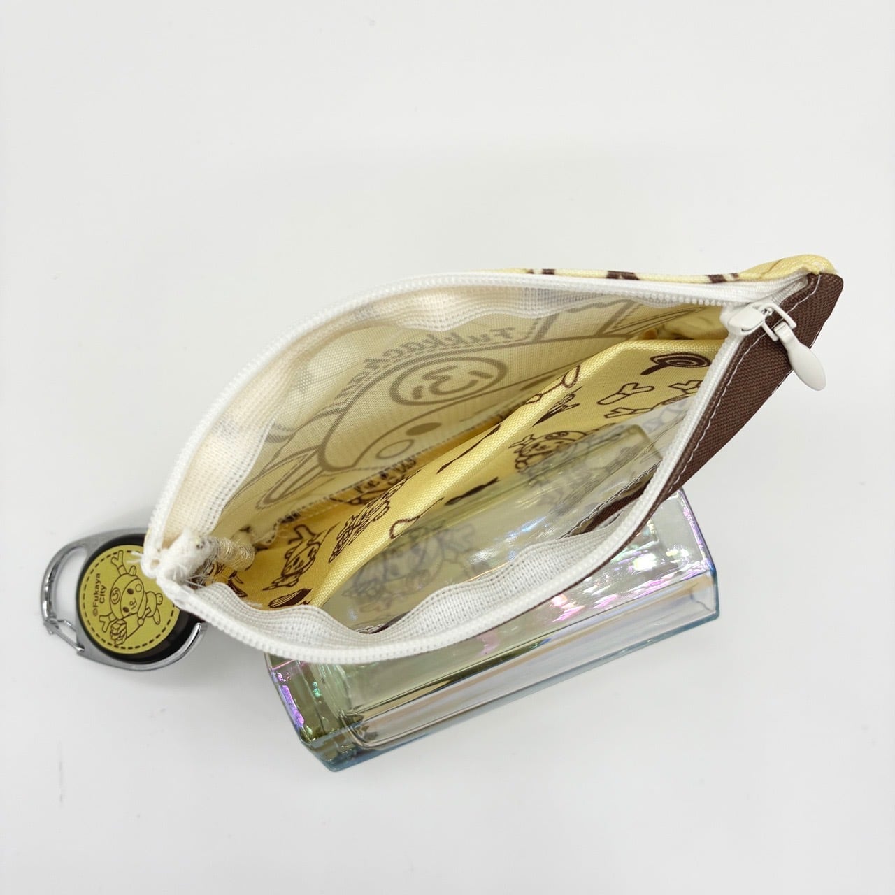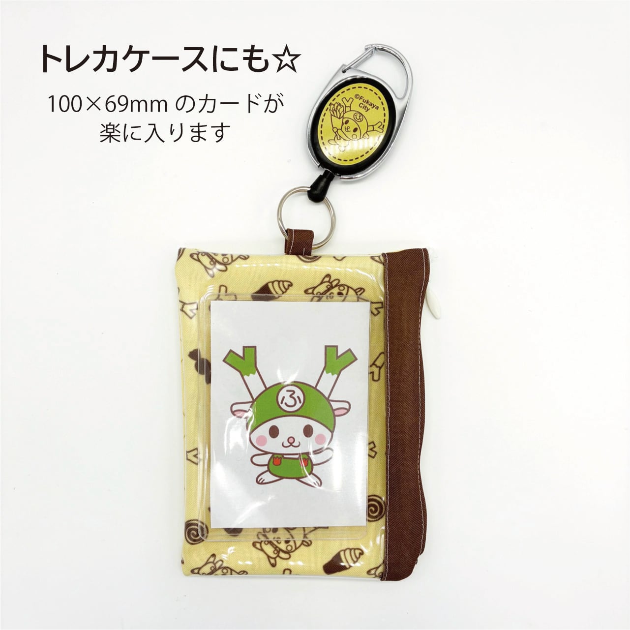 表はアップリケ風のふっかちゃんのプリント。裏はビニール生地になっていて中身が一目でわかります!様々なポーズのふっかちゃんと一緒に、ネギやスイーツが散りばめられたキュートなデザイン。