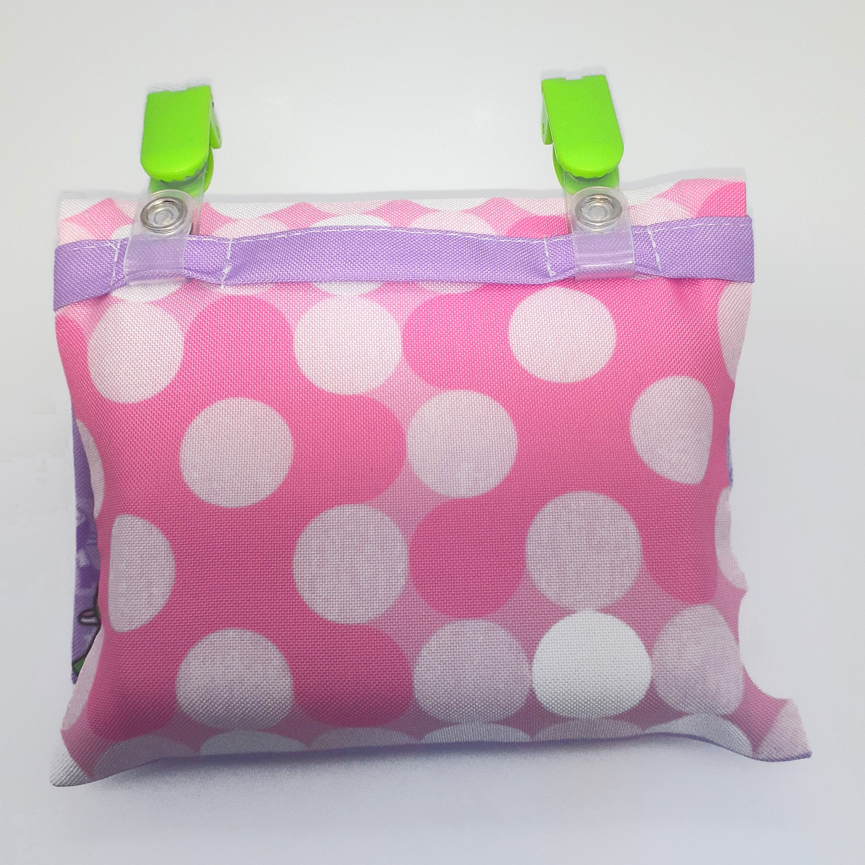 クリップでズボンやスカートにパチンと留めるだけで、簡単にポケットをプラス。ハンカチや小物が入るポケットの外側にティッシュを収納できます。