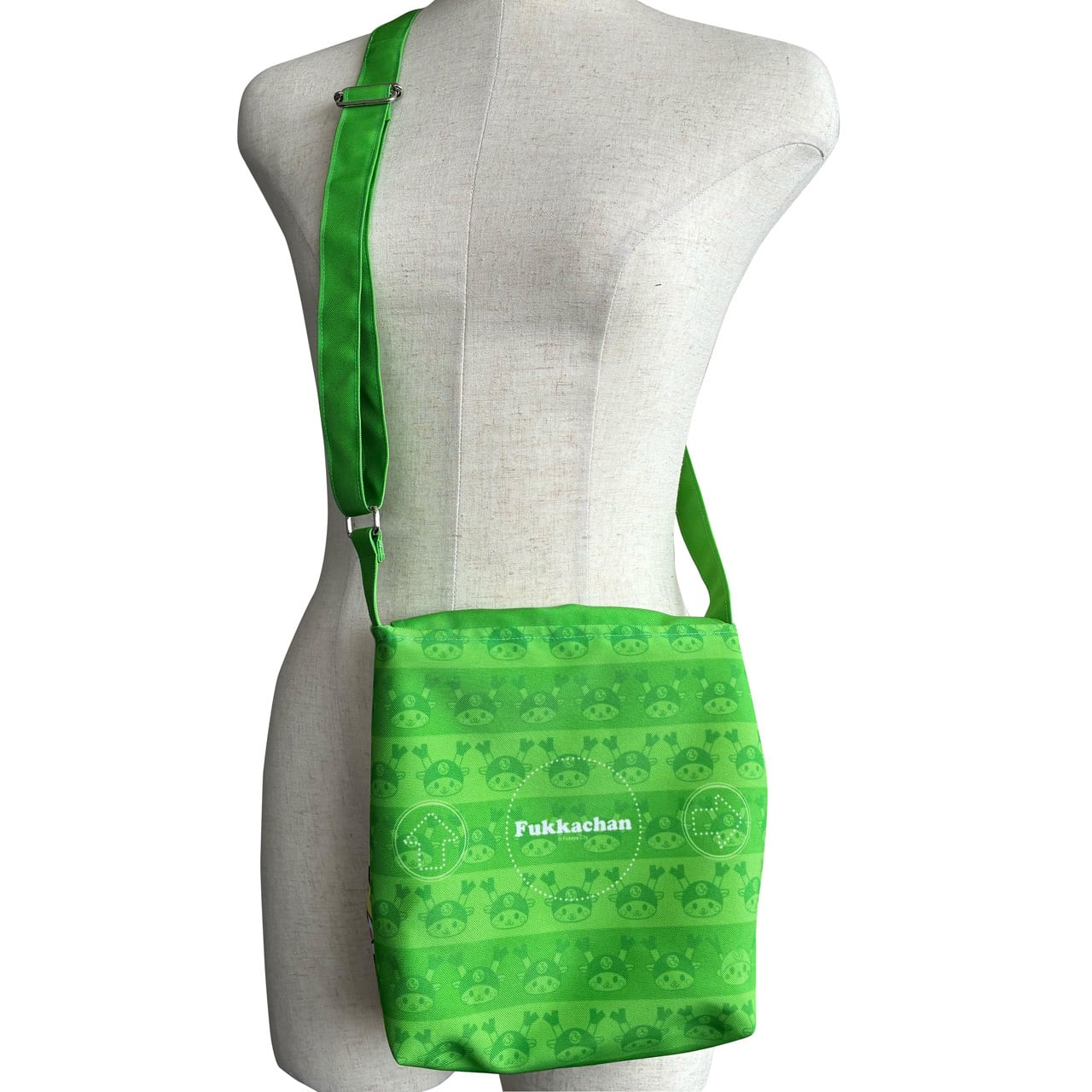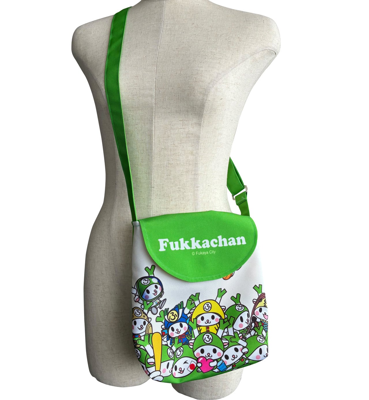 鮮やかなグリーンのフラップと、たくさんのふっかちゃんがひしめき合う賑やかなデザイン!