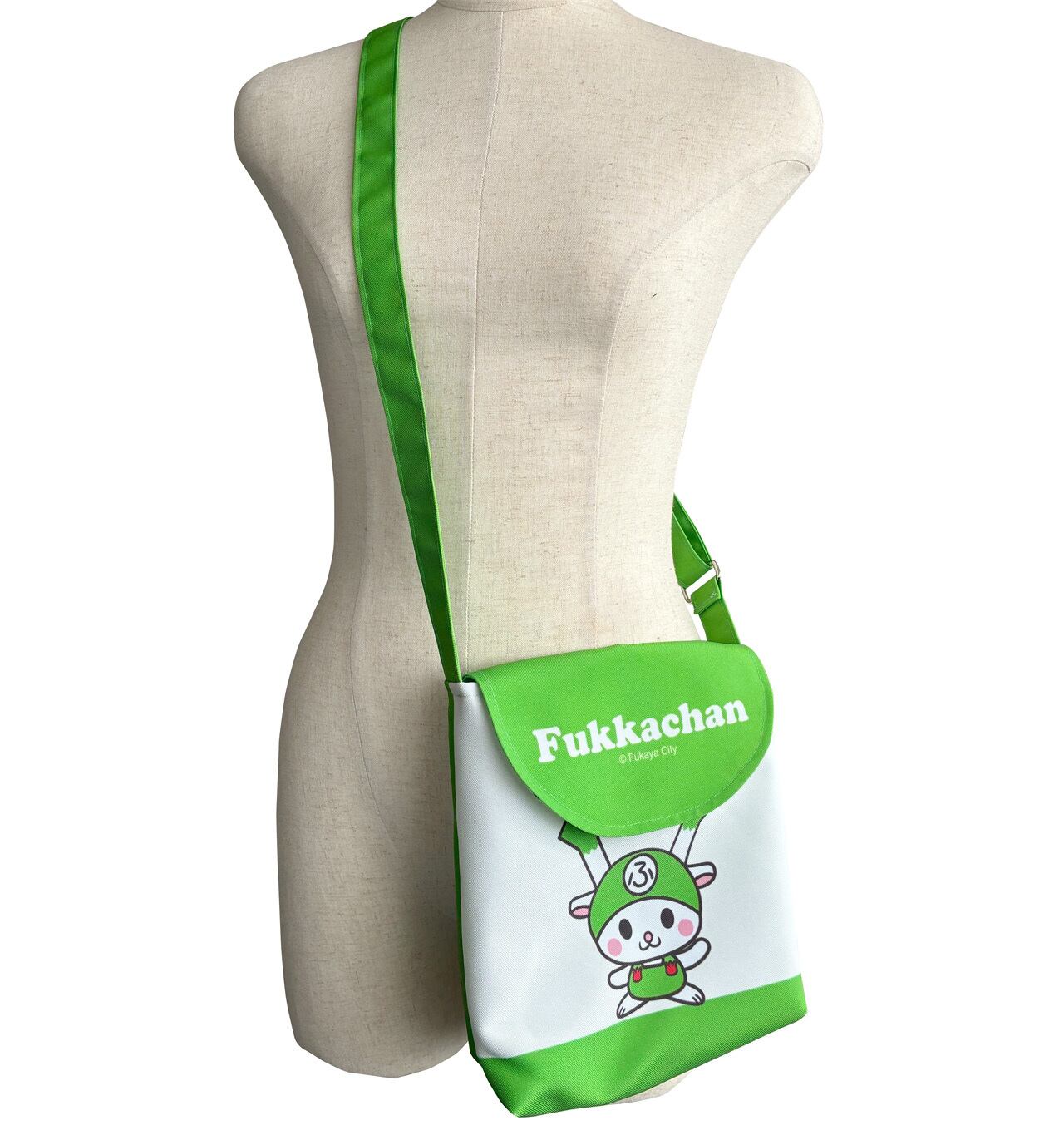 鮮やかなグリーンとホワイトの生地が洗練された印象のショルダーバッグ。ふっかちゃんが大きく配置されていて、シンプルだけど飽きのこないデザイン。