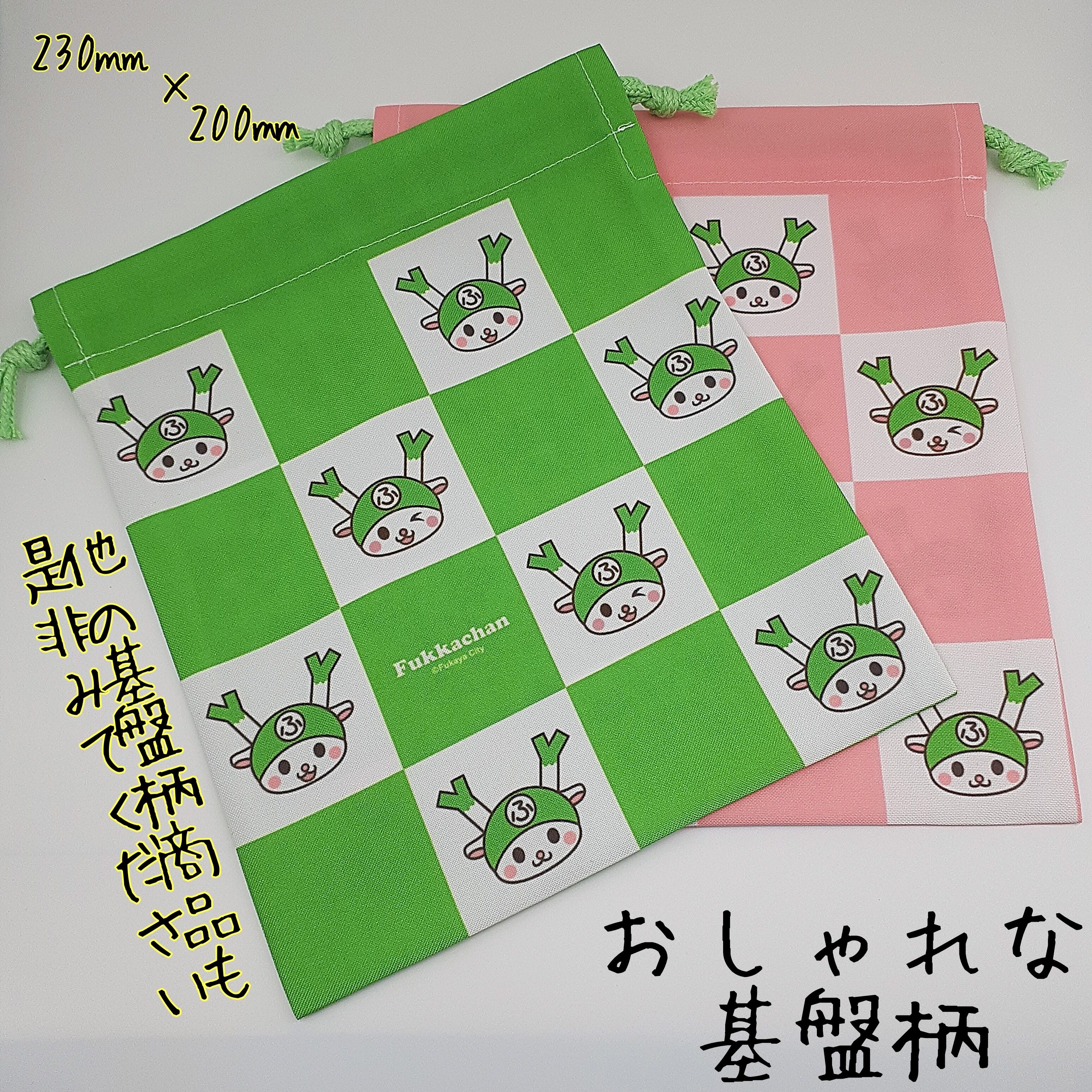 ふっかちゃんを基盤柄でプリントしたきんちゃくで、緑とピンクの2二色です。