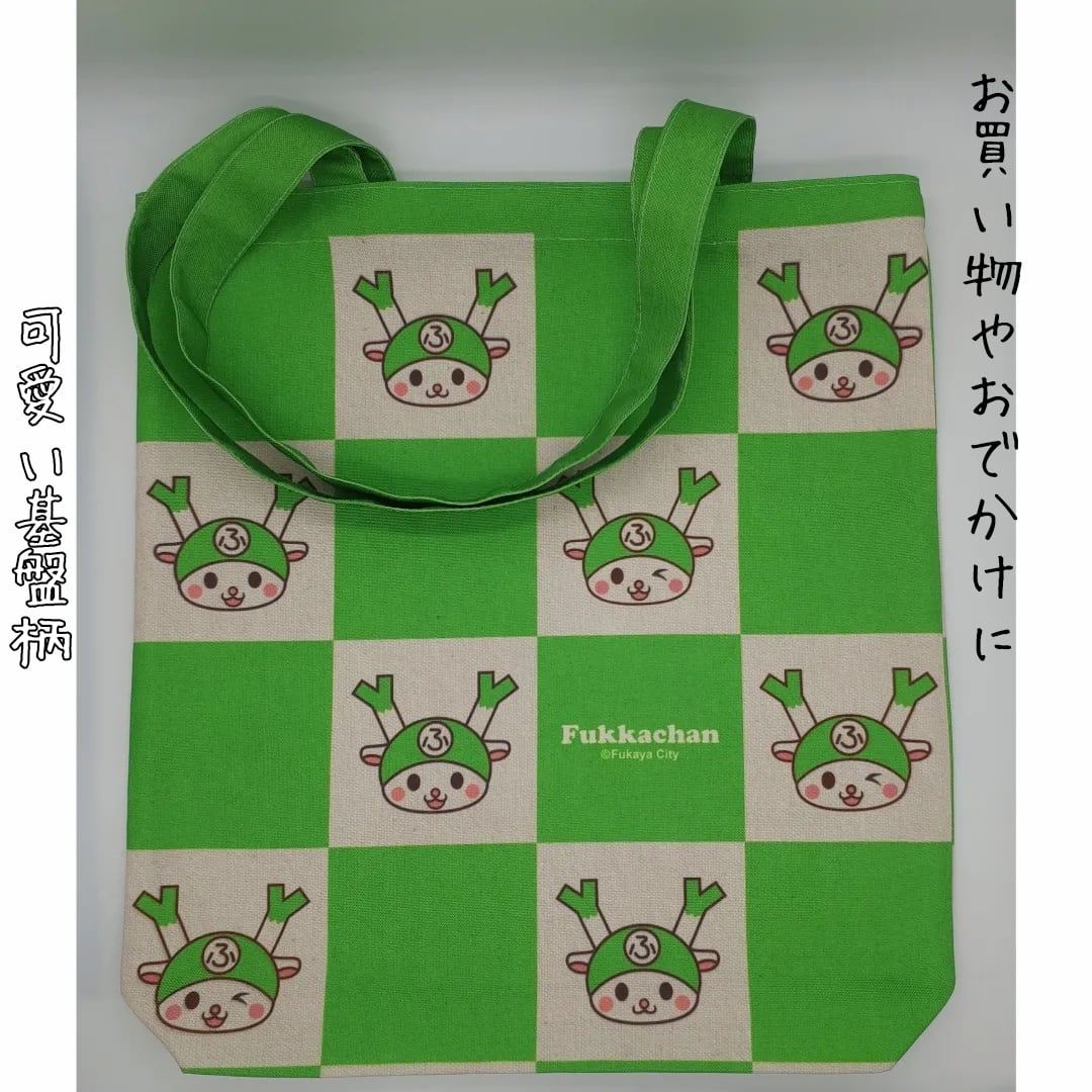 碁盤デザインにふっかちゃんの顔が交互にあり、ふっかちゃんらしいネギカラーの緑となっています。